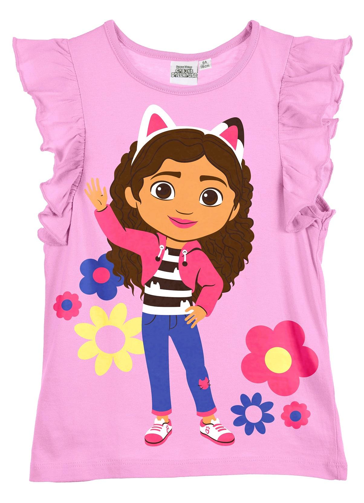 Krásné bavlněné tričko s oblíbeným pohádkovým motivem Gábin kouzelný domek. Rukávy zdobené volánky.