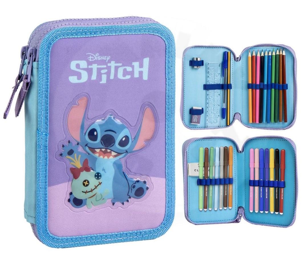Dvoupatrový penál s výbavou s motivem Lilo a Stitch.